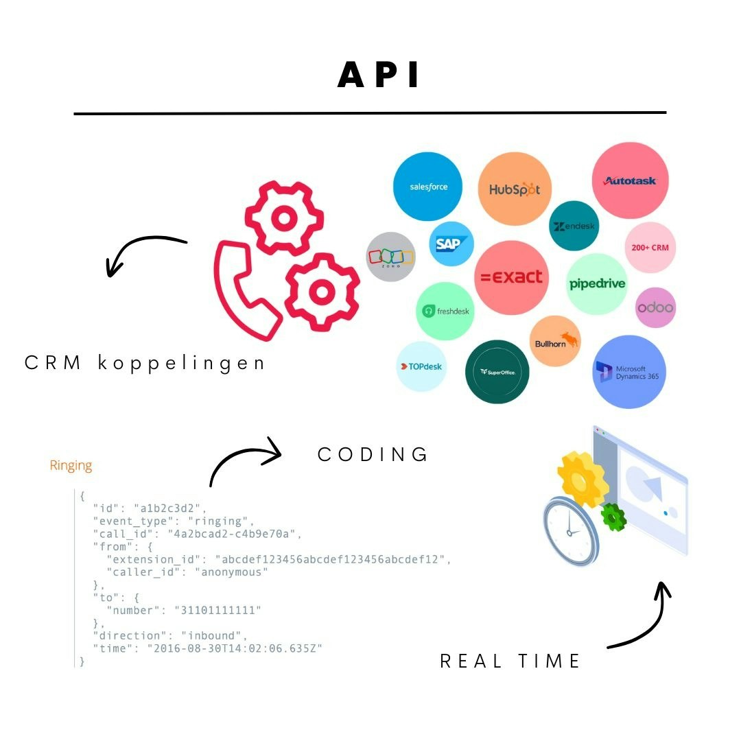 Met onze realtime API koppelt jouw telefonieomgeving moeiteloos met meer dan 100 CRM- en ERP-systemen.