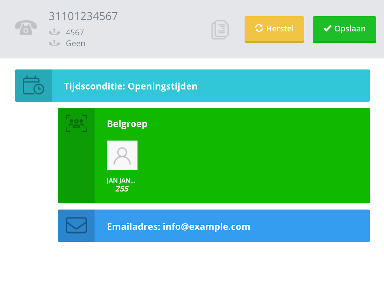 Het onderwerp en de berichttekst worden automatisch gegenereerd, zodat je altijd duidelijke en consistente meldingen ontvangt bij elk oproepmoment.
