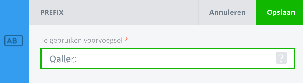 Dan kun je een prefix instellen zodat je toestel het volgende weergeeft: