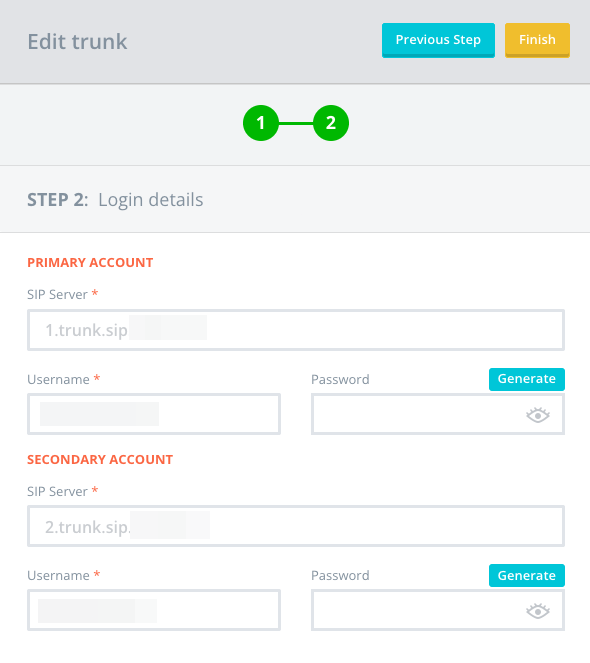 Zodra je trunk is aangemaakt, zie je in de volgende stap alle SIP-registratie-instellingen.