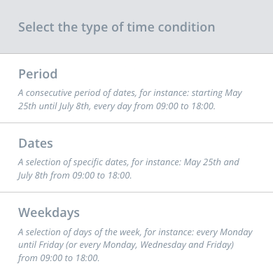 Kies het type Tijdconditie dat je wilt aanmaken: